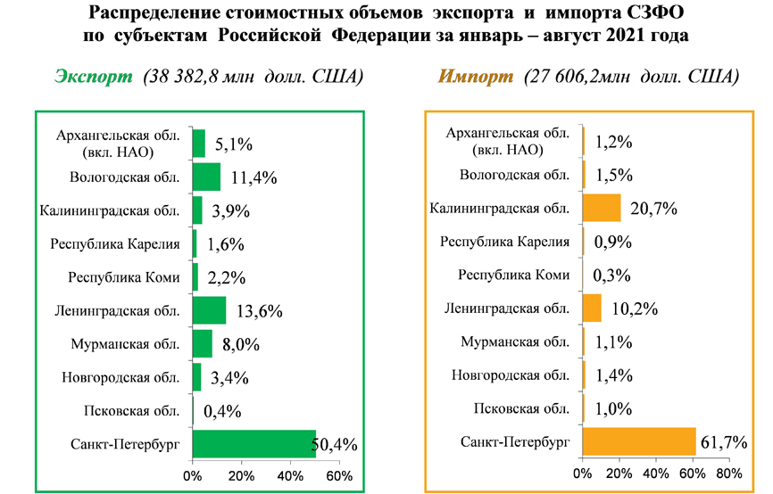 В сентябре 2021 года таможенными органами Северо-Западного таможенного управления осуществлено взимание в федеральный бюджет Российской Федерации таможенных и иных платежей на сумму 72,42 млрд. рублей, в том числе в отношении импортируемых товаров – 66,54 млрд. рублей, экспортируемых товаров – 5,14 млрд. рублей.