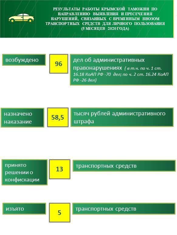 Особое значение было уделено нарушениям условий временного ввоза лицами-нерезидентами РФ транспортных средств международной перевозки на таможенную территорию ЕАЭС, погашению задолженности по уплате таможенных платежей при нарушении срока временного ввоза, предупреждению и пресечению ряда других нарушений таможенного законодательства.