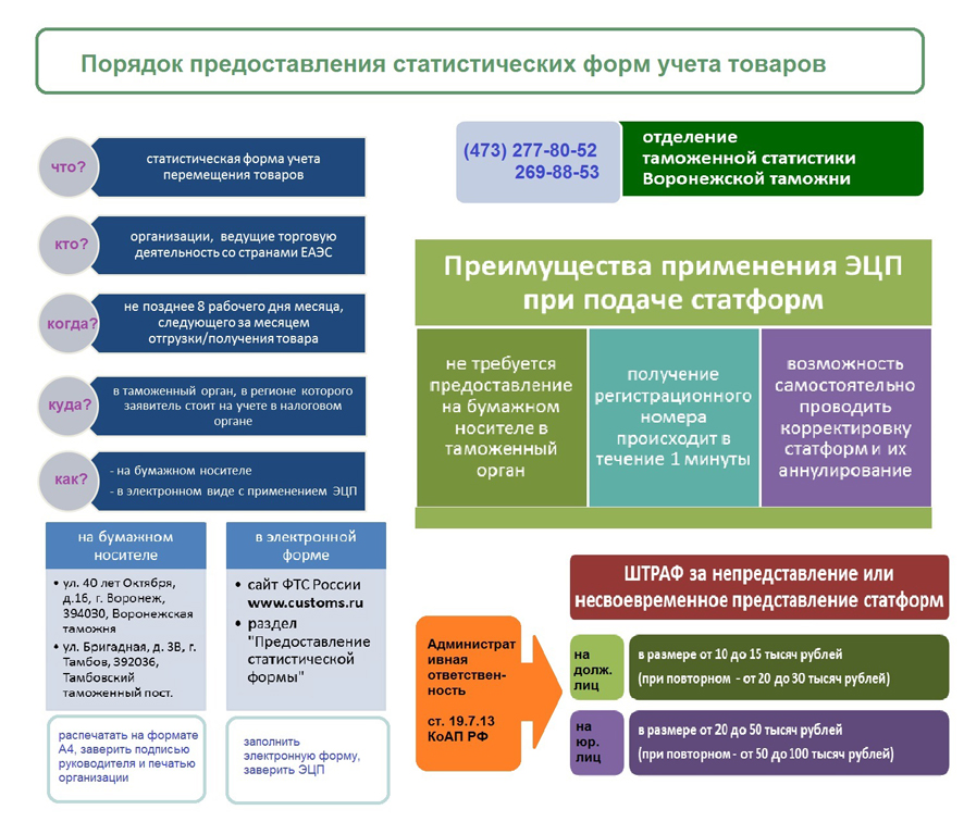 - статистическая форма представляется в таможенный орган только в виде электронного документа, подписанного усиленной квалифицированной электронной подписью, через личный кабинет участника ВЭД на сайте ФТС России (www.customs.ru).
