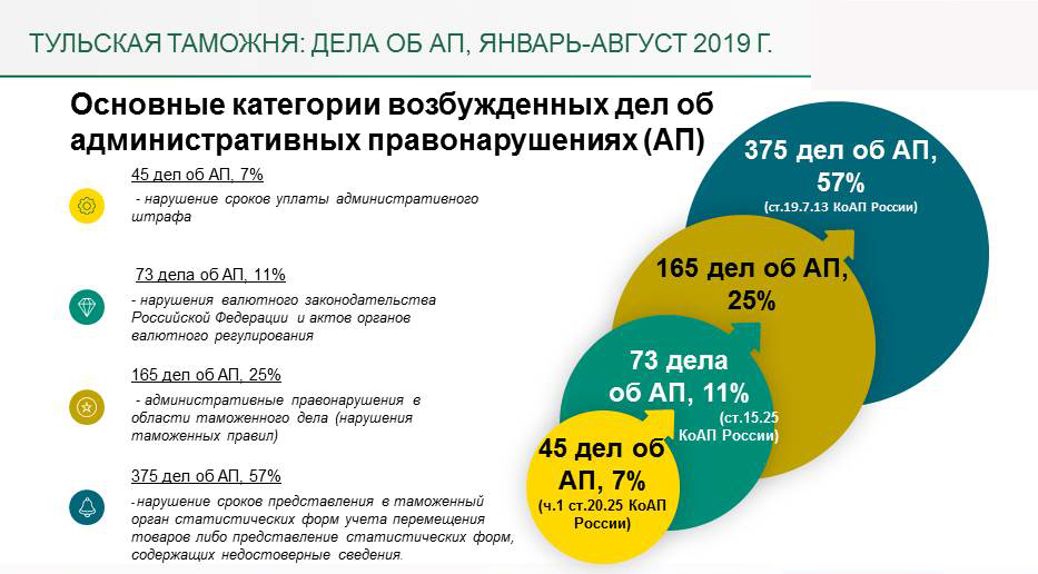 Сравнивая итоги первых шести месяцев текущего года с аналогичным периодом прошлого года, таможенные специалисты отмечают, что основное количество выявленных административных правонарушений связано с перемещением товаров через таможенную границу Евразийского экономического союза. При этом в текущем году на 40,6% возросло количество выявленных экономически опасных правонарушений.